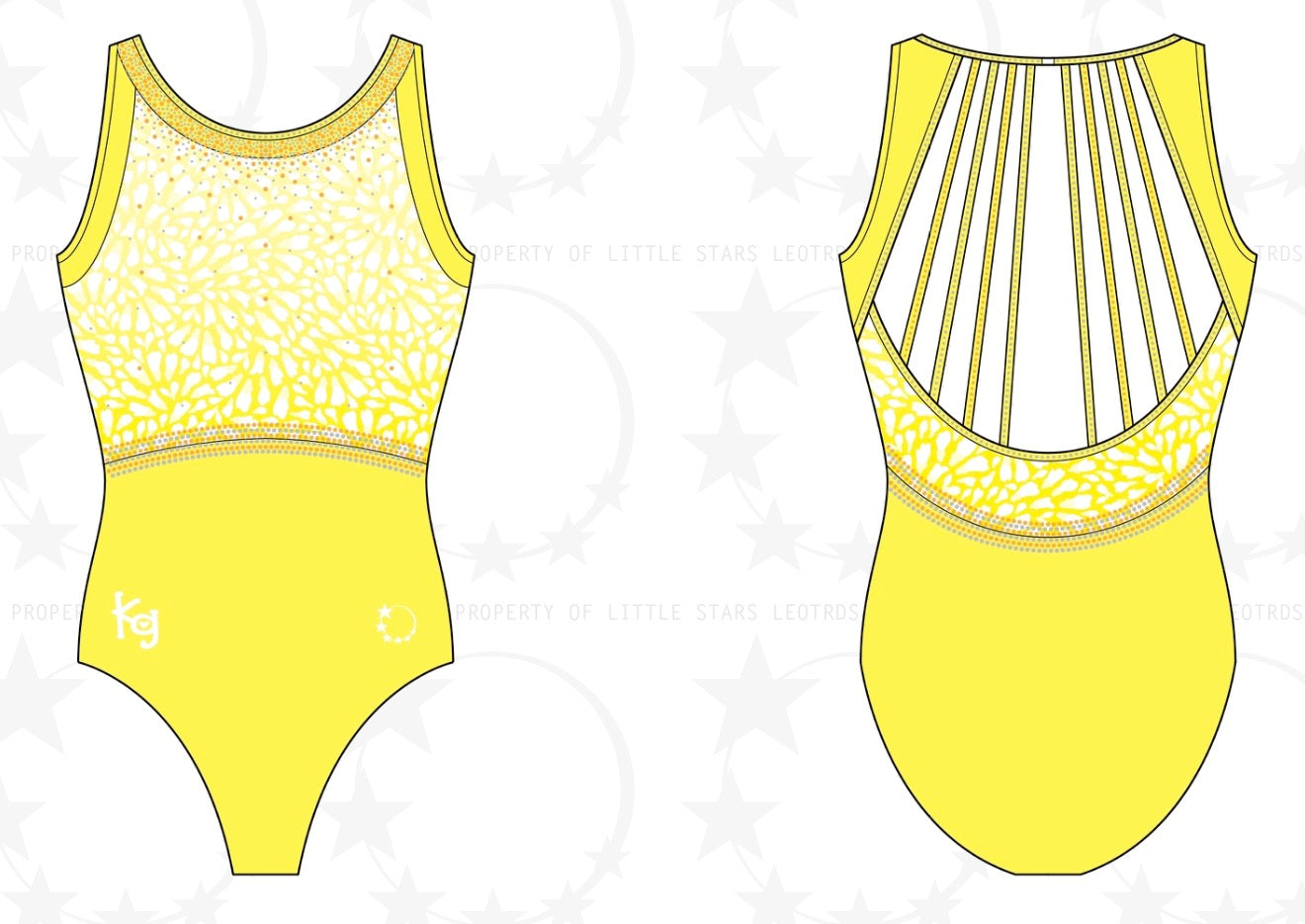 Soft, luminous, and timeless—this leotard is a love letter to classic elegance and quiet strength. Bathed in a bright yellow hue, it features a delicate rose petal print that dances like candlelight. The silhouette is refined and graceful, while the rounded neckline keeps the look timeless and polished. The back is where the magic unfolds—an elegant clasp-back design with vertical strap detailing creates a striking yet sophisticated finish, blending beauty with strength. Subtle crystal accents add just the right touch of sparkle, catching the light with every movement. Designed for gymnasts who lead with heart, intelligence, and confidence, this piece is perfect for those who know that true power doesn’t need to shout—it shines. *Includes shelf bra with removable padding in sizes AXS and up.